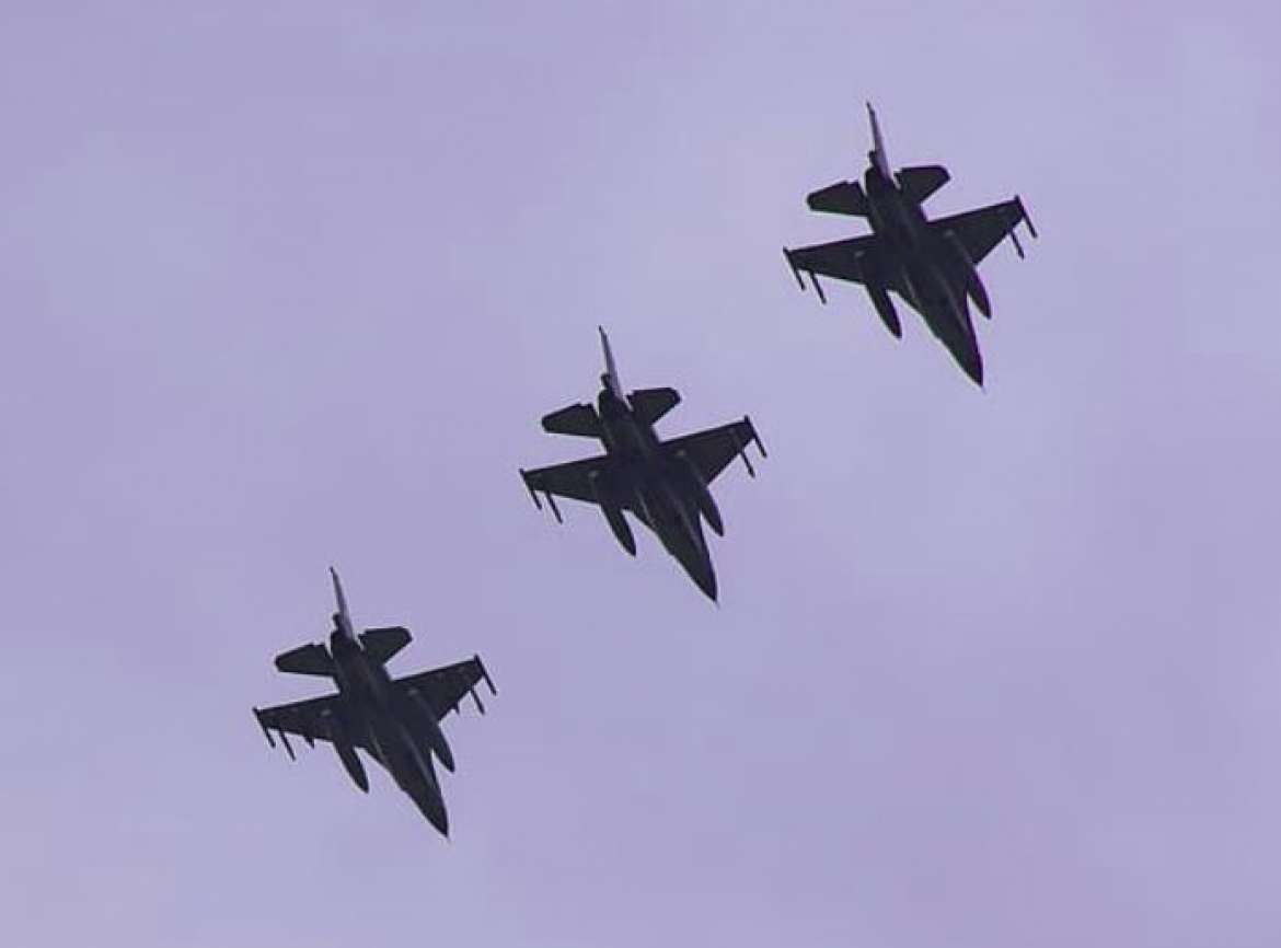 Three Slovenian Pilatus PC-9 will be joined by for the six American F-16 fighters, taking off from Aviano air base in Italy, will join up around Jesenice in the west just after 1pm and then fly a loop over the entire country east and then back west.